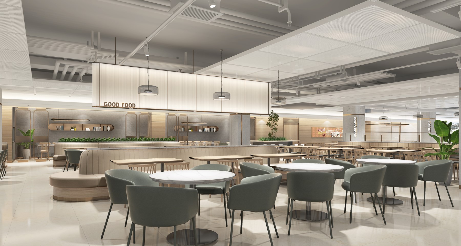 于設(shè)計的專注凝聚而成的靈感,不僅體現(xiàn)在設(shè)計本身,更是在原來的基礎(chǔ)上增加了相關(guān)的配套設(shè)施,它們是餐飲空間中不可或缺的一部分,于無聲之處增添體驗感,而從設(shè)計的角度出發(fā),將員工餐廳設(shè)計的風(fēng)格統(tǒng)一,整體協(xié)調(diào),更是促進(jìn)了空間的融合度。
